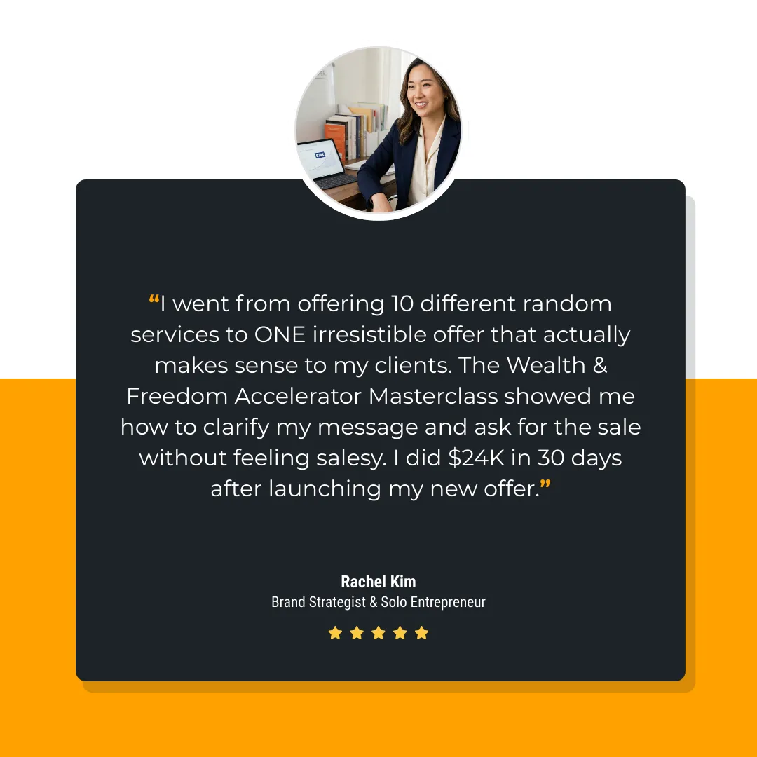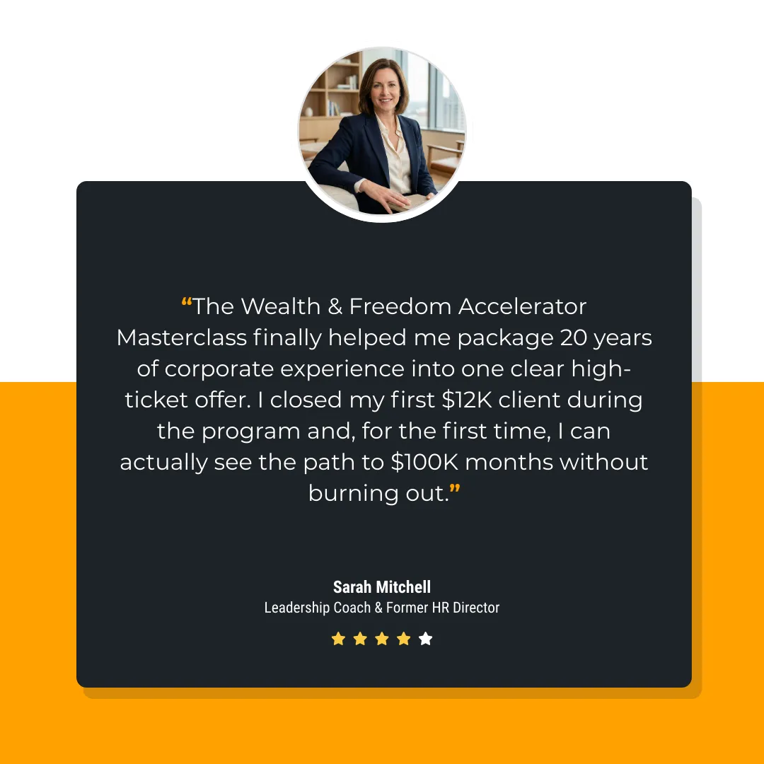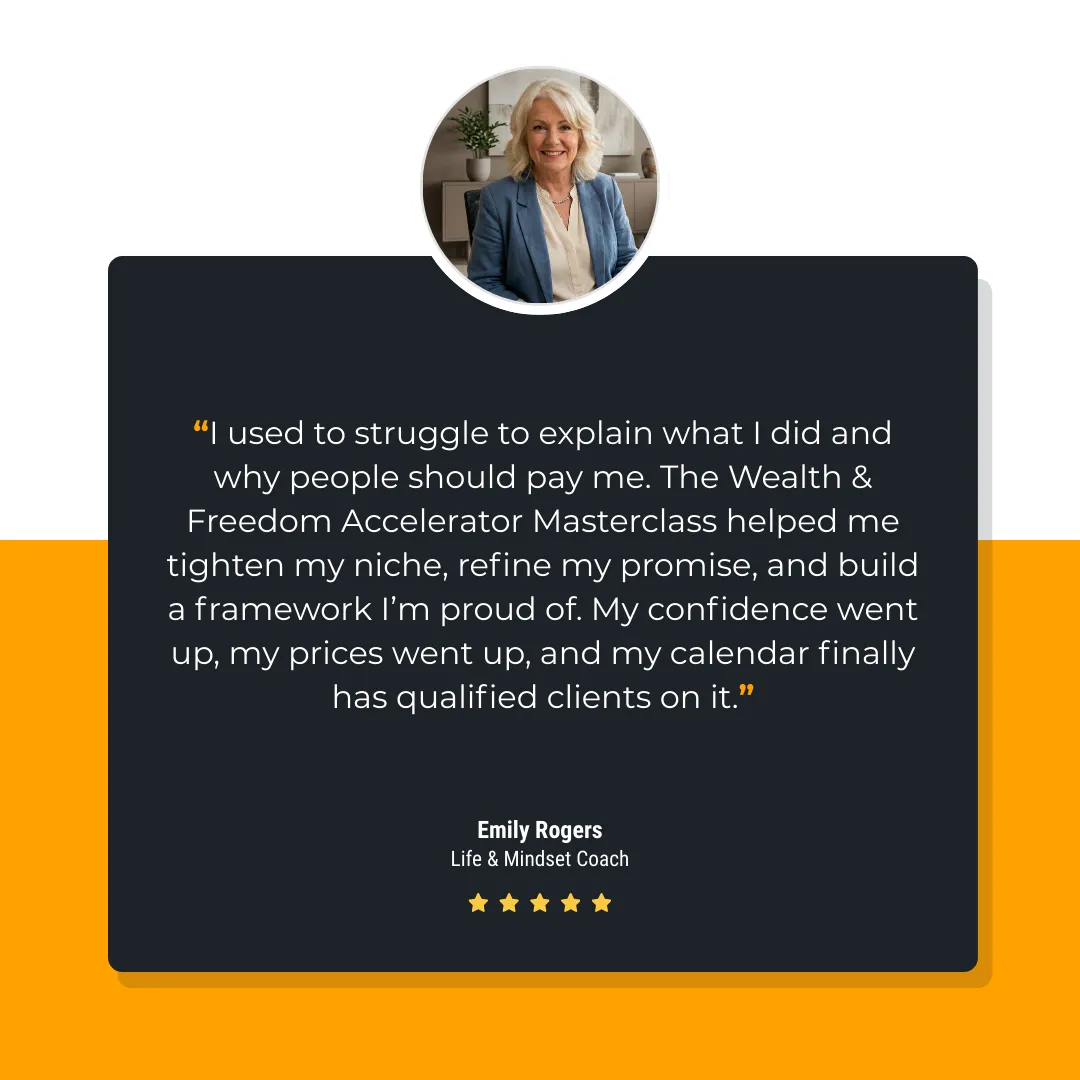 Most entrepreneurs do it backwards. They build a business first… then try to squeeze a life in the cracks. In the Wealth & Freedom Accelerator, we flip that. You get CLARITY on your Life-First destination before you design the vehicle.